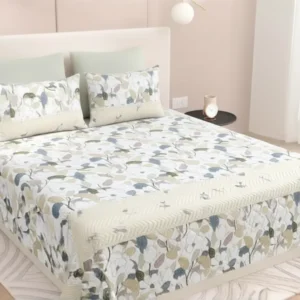 Give your bedroom a fresh and beautiful makeover with the FeelsGood Home Decor Floral Bedcover. Featuring a calming Sage Green and Pastel Floral print, this bedcover creates a peaceful and refreshing atmosphere in your room. It is designed to be as comfortable as it is elegant, making it perfect for daily use.Crafted from premium quality fabric, it offers a soft feel against the skin. The set includes two matching pillow covers, ensuring your bed looks complete and sophisticated.Product HighlightsBeautiful Design: Features a soft floral pattern with a stylish beige border for a refined look.Soft Fabric: The material is gentle on the skin and provides long-lasting comfort.Perfect Fit: Sized for a double bed, providing full coverage for a neat appearance.Complete Set: The package comes with one bedcover and two matching pillow covers.SpecificationsFeatureDetailsBrandFeelsGood Home DecorProductDouble Bed BedcoverDesignFloral PrintColorSage Green & CreamPackage Includes1 Bedcover + 2 Pillow CoversCare InstructionsMachine wash on a gentle cycle or hand wash with mild detergent. Dry in the shade to keep the colors looking new for a long time.