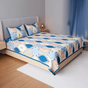 Transform your bedroom into a luxurious, global-inspired space with the FeelsGood Premium Royal Paisley Quilted Bed Cover. This striking design features large, intricate Paisley and ornamental swirl motifs in a rich palette of earthy brown, terracotta, vibrant blue, and sunny yellow, set against a crisp white background with diamond Quilting—perfect for those who love exotic, artistic, and warm décor.  Enhanced Features & Comfort Size and Fit: This luxurious Double Bed Size (90 x 100 inches) bedspread is also designed to Fit to King Size Bed Also, offering excellent versatility and comprehensive coverage. Quilted Luxury: Crafted with high-quality Quilting, the bed cover provides a soft, padded, and comfortable feel that is gentle on the skin, ensuring durability for year-round use. Complete Set: The set includes 1 Double Size Quilted Bed Cover and 2 Big Size Pillow Covers with Frill, completing the coordinated and harmonious look. Premium Finish: The opulent Paisley pattern and unique color combination bring a rich, bohemian elegance. An eye-catching Elegant Ruffle Frill in a complementary brown geometric pattern adds a premium touch and beautifully conceals the sides of your bed. This bed cover set is ideal for master bedrooms, themed rooms, home décor enthusiasts, or gifting, offering both artistic style and comfort in one beautiful package.  Key Specifications Design Name: Royal Paisley Swirl (Intricate, rich, and global-inspired pattern.) Bed Cover Size: Double Bed Size 90 x 100 inches Quilting: Quilted Comfort Fabric (Soft, padded, and durable material.) Compatibility: Fit to King Size Bed Also Pillow Covers: Includes 2 Big Size Pillow Covers with Frill Palette: Bohemian Blue & Brown (Warm browns, vibrant blues, and yellows make your room rich and inviting.) Features: Elegant Ruffle Frill  Washing Tips (Care Instructions) Gentle Cycle: Machine wash in cold water on a gentle cycle. Color Safety: Always use a color-safe detergent to protect the prints and colors. Avoid Bleach: Do not use harsh bleach or chemicals. Avoid Direct Sunlight: To maintain its beauty and prevent fading, dry away from direct sunlight. Tumble dry on low heat. Low Heat Iron: Iron on a low temperature setting if necessary.