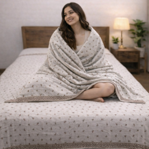 Upgrade your summer comfort with the FeelsGood Beige Leaf Dots Top Sheet Set. Featuring a subtle and minimal dotted leaf pattern on a soft beige base, this design brings a clean, modern, and soothing look to your bedroom. Made from soft and breathable fabric, this lightweight top sheet is perfect for warm nights and air-conditioned rooms. It provides comfort without heaviness, making it ideal for everyday use. The pack of 2 ensures convenience and great value for daily living. ✨ Key Features:✔ Lightweight & Breathable – Perfect for Summer✔ Soft & Skin-Friendly Fabric✔ Beige Leaf Dots Minimal Design✔ Ideal for Everyday Use✔ Pack of 2 – Value for Money✔ Easy to Maintain & Durable 📏 Size: 60 x 90 Inches (Single Bed)📦 Package Includes: 2 Top Sheets Designed for those who prefer simplicity, comfort, and elegance in their bedding essentials.