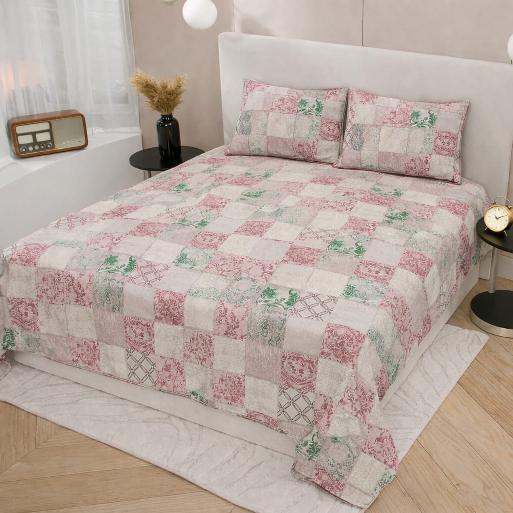 Feels Good King Size Printed Bedsheet (108×108 Inches) with 2 Pillow Covers | Multicolor Patchwork Floral Design | Premium Cotton King Size Bedsheet