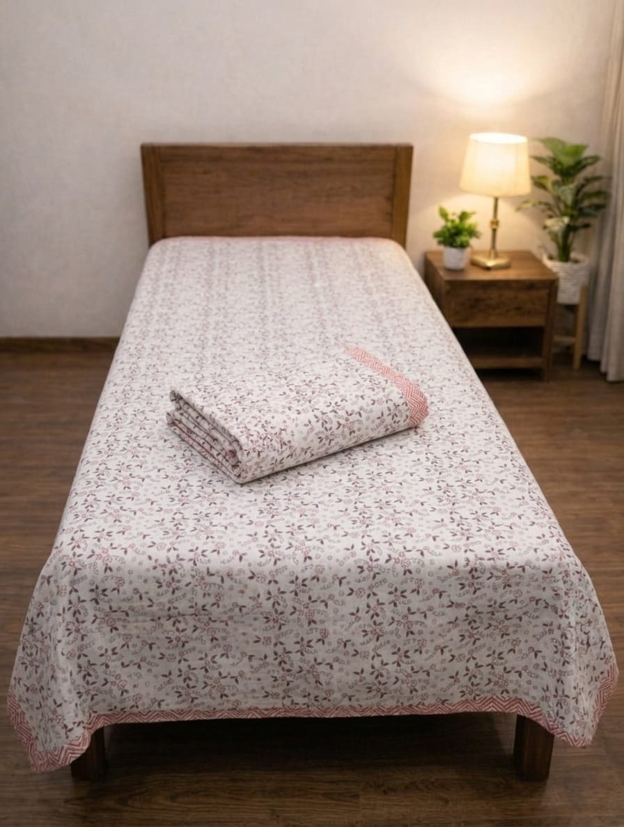 FeelsGood Dusty Rose Vine Premium Single Bed Top Sheet Set (60×90 Inches) | Lightweight Summer Blanket | Soft Breathable Fabric | Pack of 2