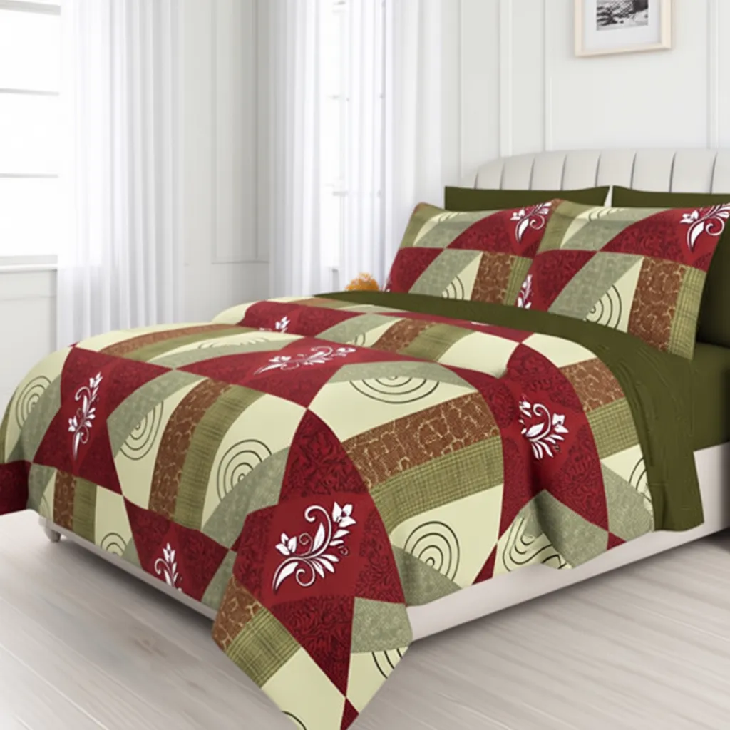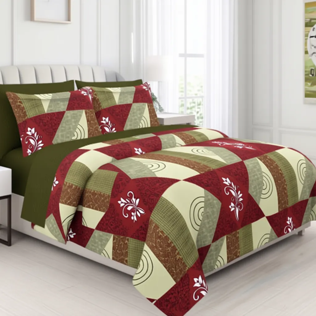 Elevate your bedroom style with the FeelsGood Home Decor 100% Organic Pure Cotton Double Bed Bedsheet in Green & Maroon Geometric Printed Design. Made from premium Procion-quality cotton, this bedsheet (230 cm x 240 cm) offers softness, breathability, and long-lasting durability. The elegant geometric print in soothing green and maroon shades adds a touch of sophistication to your room décor. The set includes 1 bedsheet with 2 matching pillow covers, making it both practical and stylish.