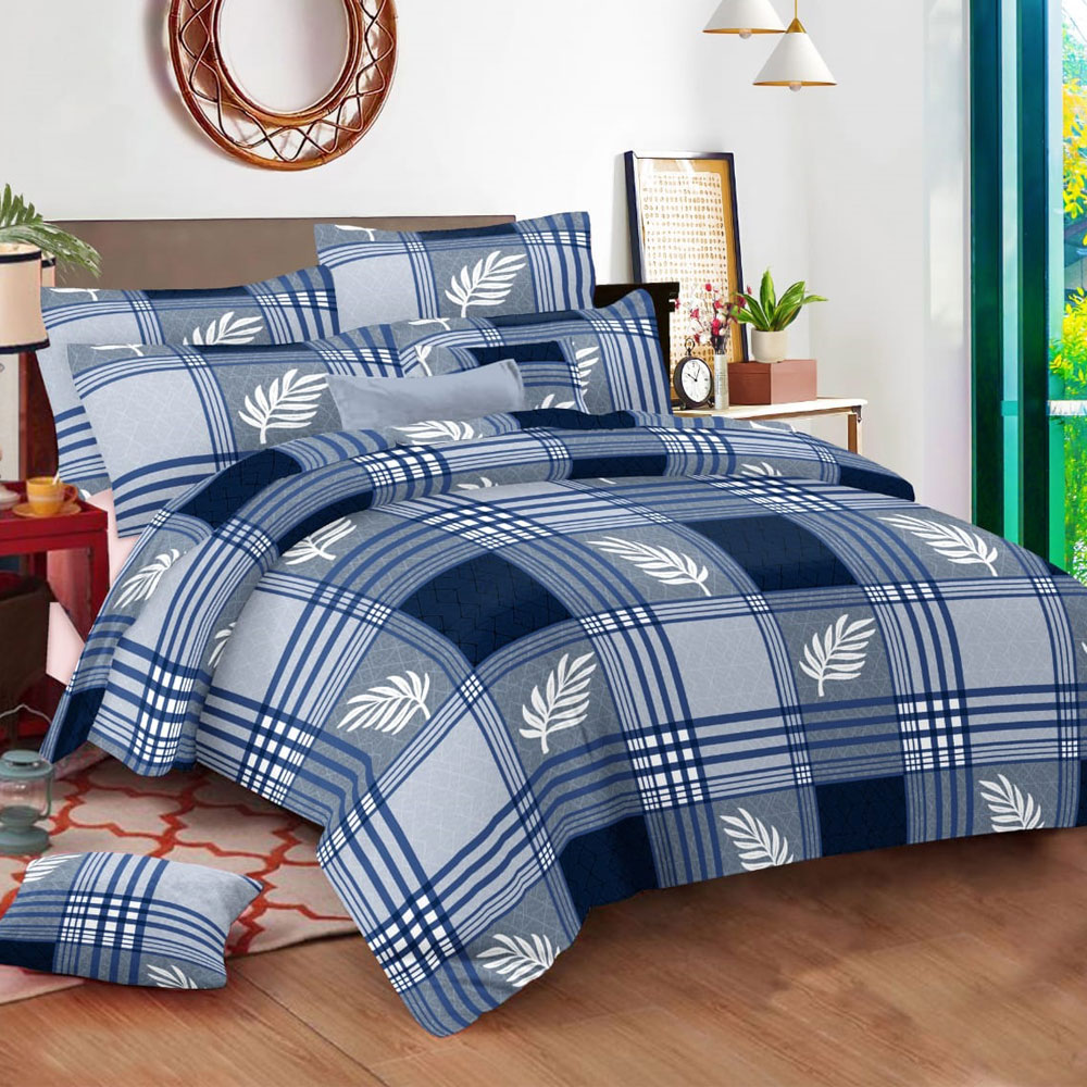 Refresh your bedroom décor with the FeelsGood Home Decor 100% Pure Cotton Single Bed Bedsheet in Blue & Grey Checkered Design. Made from soft and breathable cotton, this bedsheet (150 cm x 220 cm) ensures everyday comfort and long-lasting durability. The stylish blue and grey checkered pattern with leaf prints adds a modern and elegant touch to your room.