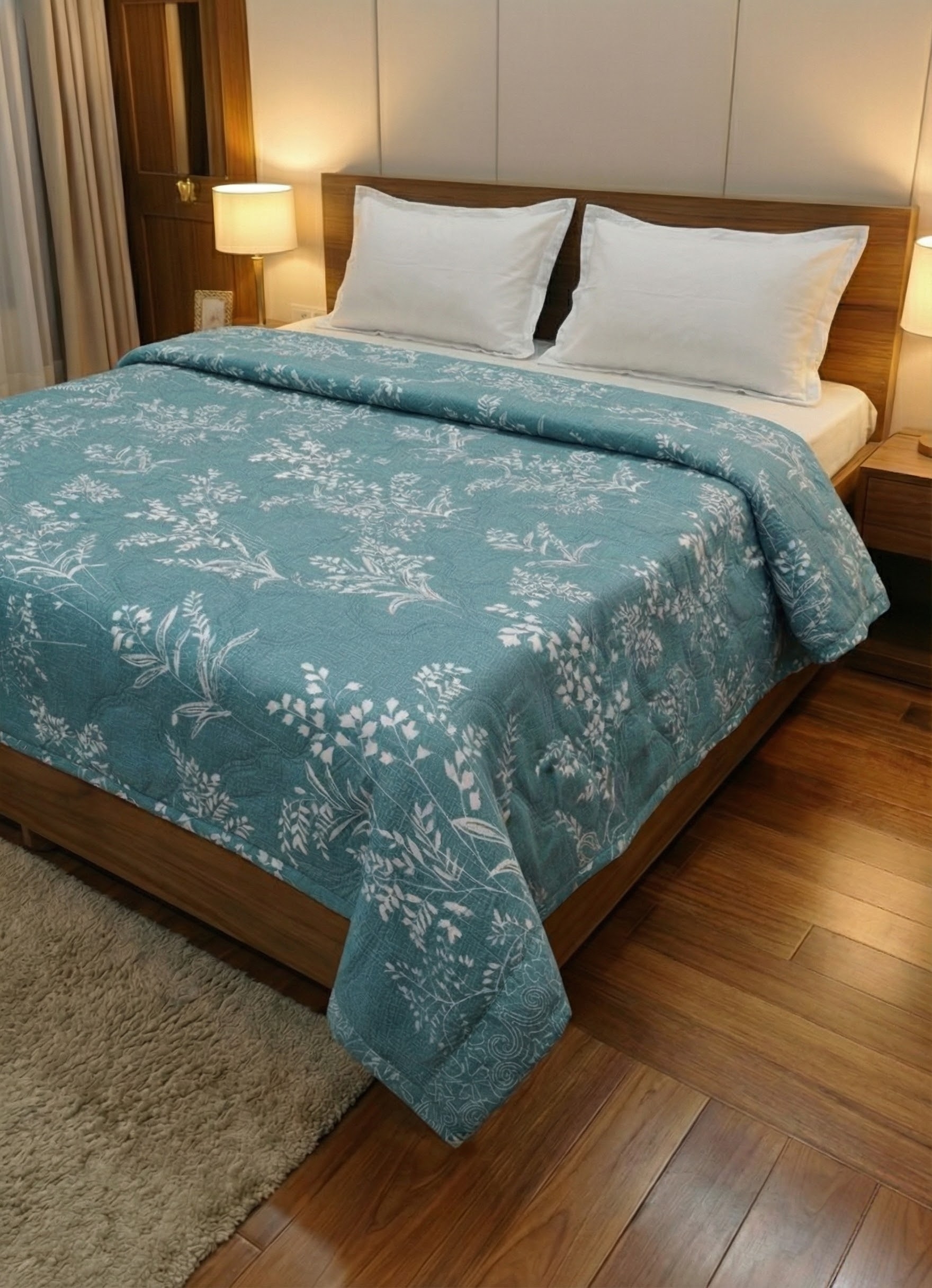 FeelsGood Home Decor Double Bed Comforter | Serene Teal Blue & White Wildflower Print | Premium Ultra-Soft Microfiber AC Quilt | Lightweight & Cozy | (1 Piece Only)