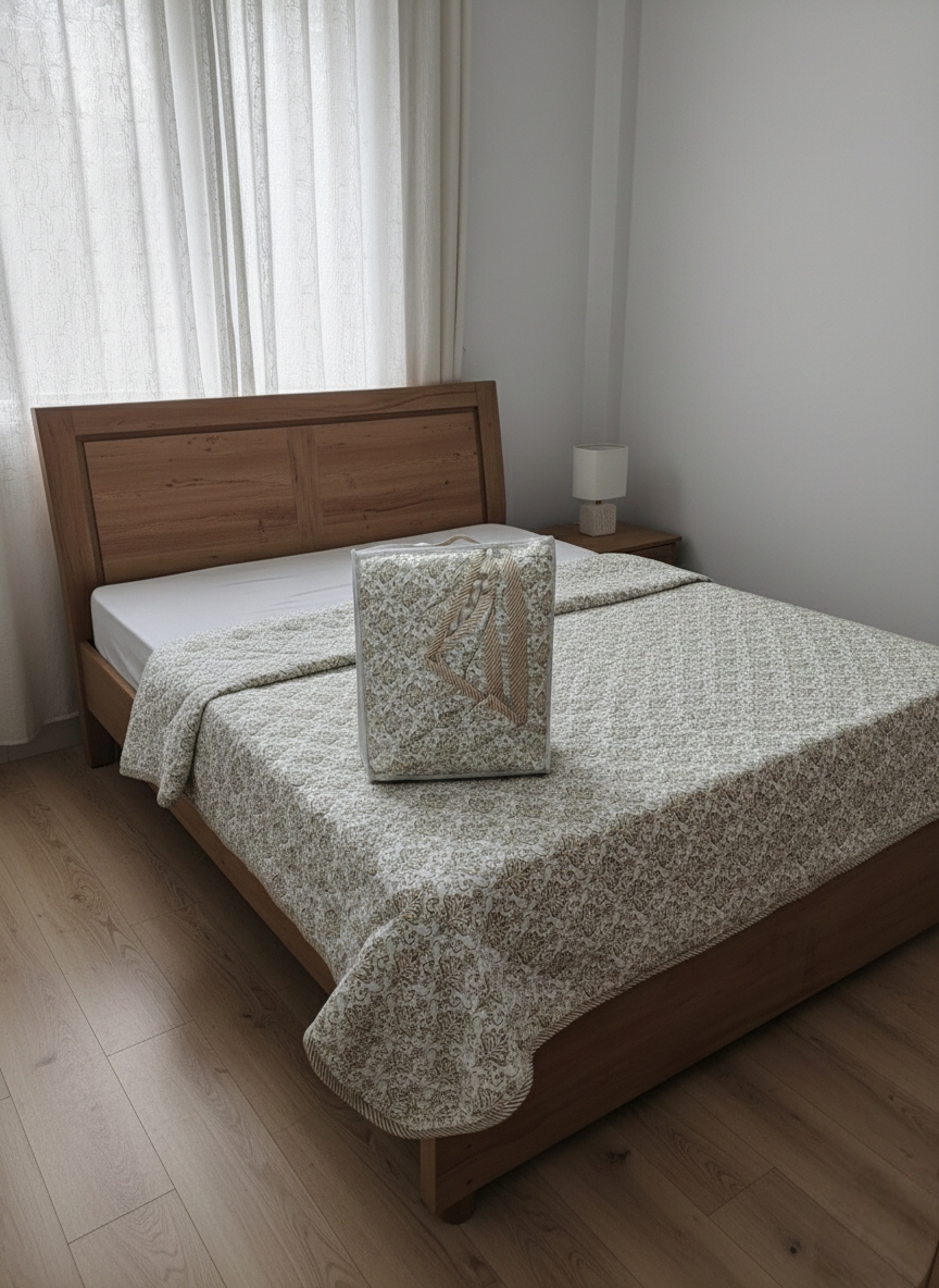• Royal Floral Print: The front side showcases an elegant Gold and Cream floral pattern, giving your bed a premium look.