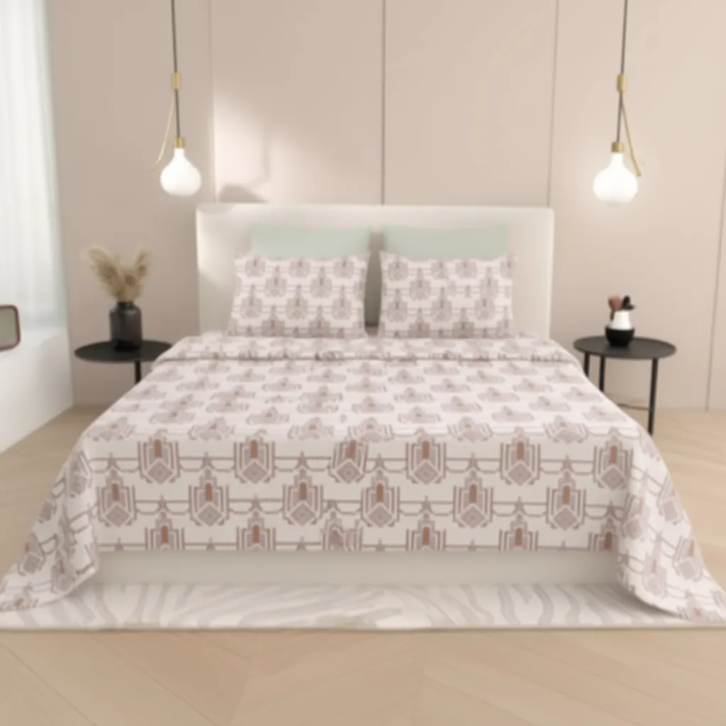 The Feelsgood Home Decor Contemporary Collection brings a clean, architectural aesthetic to your living space. This bedsheet features a unique, repeating geometric motif in warm earth tones, perfect for creating a structured yet cozy atmosphere. Crafted for those who appreciate understated luxury, this set blends seamless style with exceptional comfort.