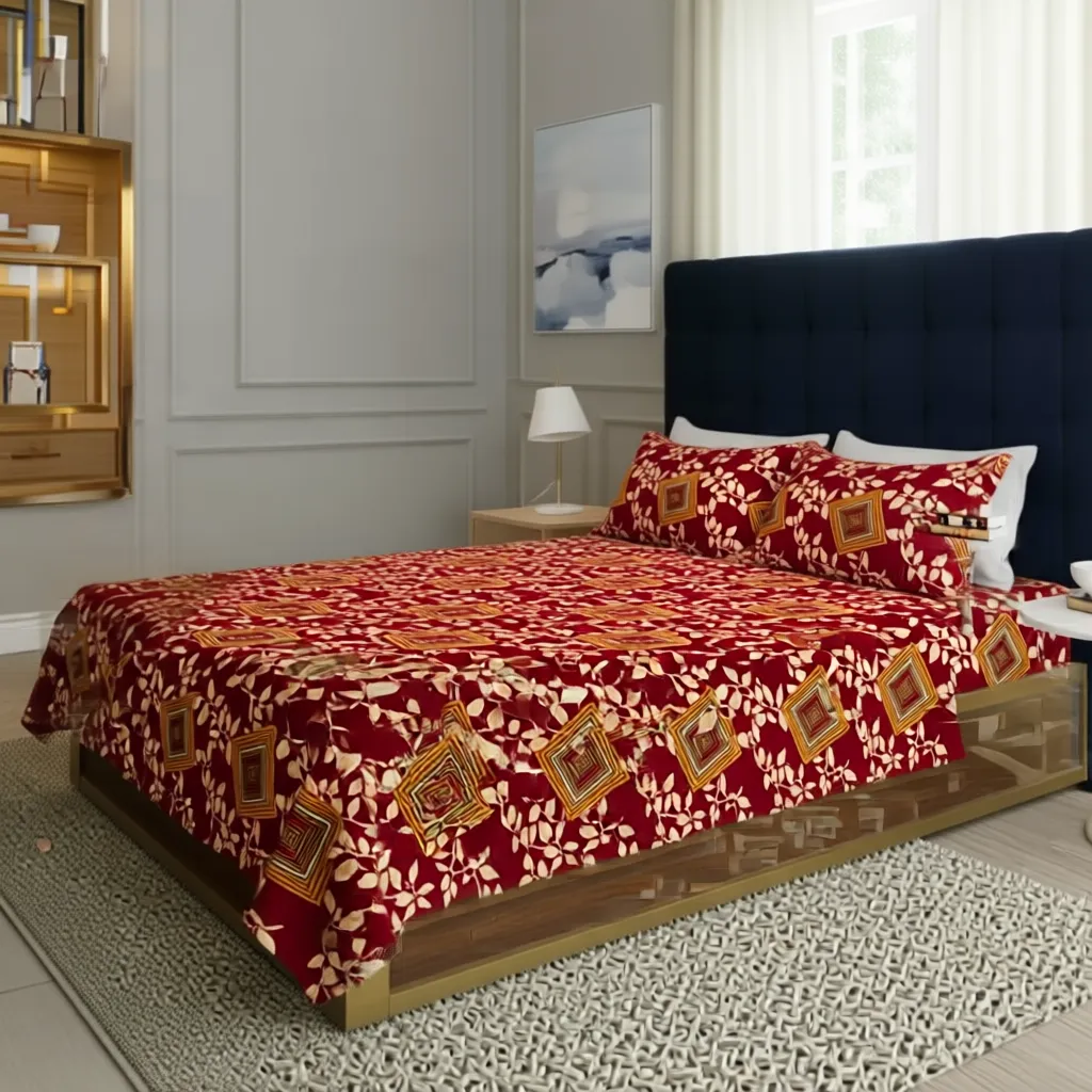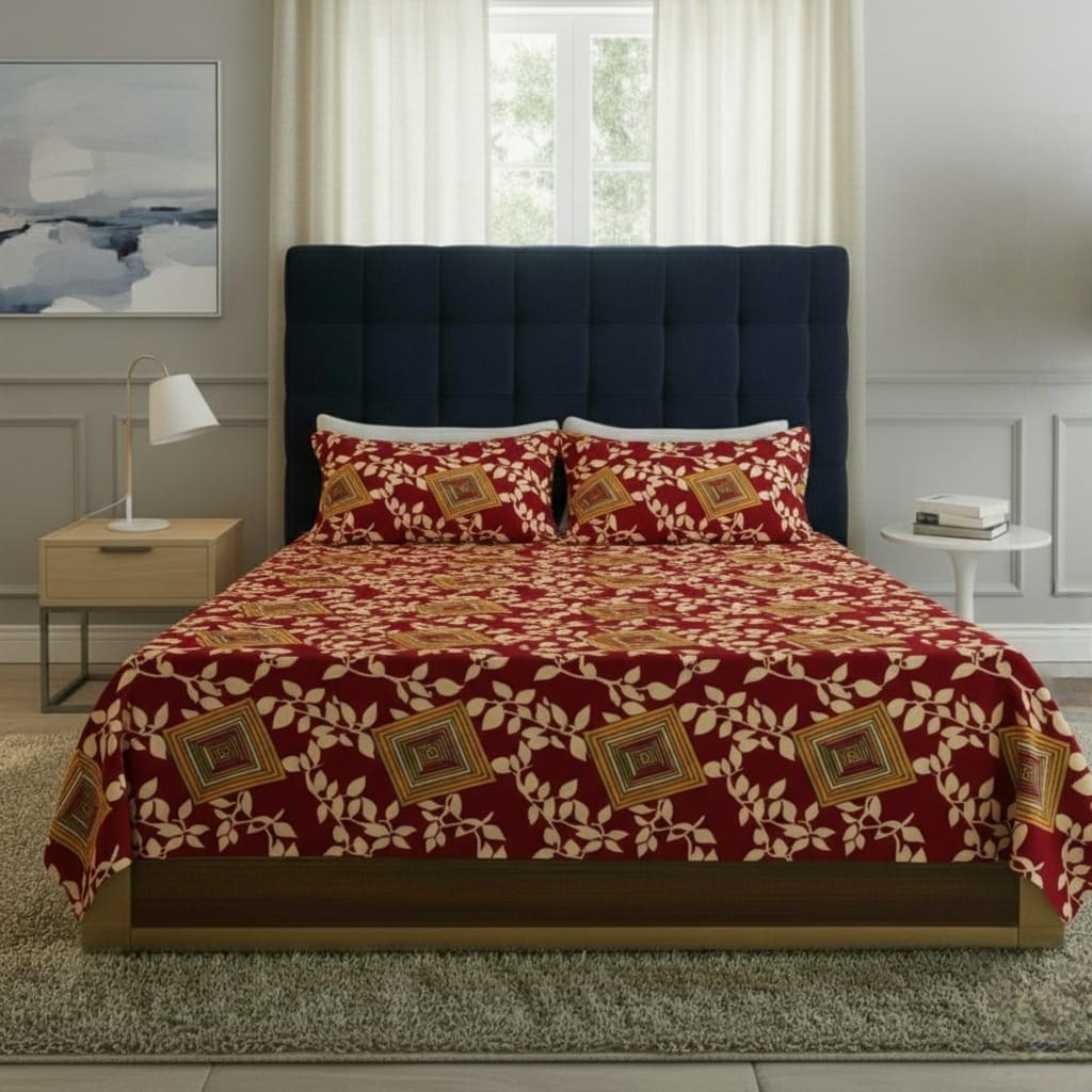 Bring a stylish touch to your bedroom with the FeelsGood Home Decor Double Bed Bedsheet, crafted from high-quality microfiber fabric for a soft, lightweight, and smooth feel. Featuring a unique Maroon & Beige Leaf with Geometric Print Design, this bedsheet adds both elegance and modern charm to your space.