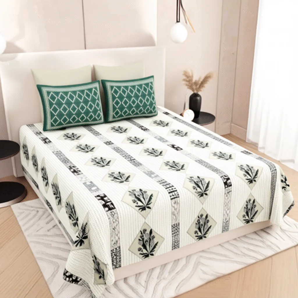 Adorn your bedroom with the sophisticated charm of the FeelsGood Home Decor Organic Pure Cotton King Size Bedsheet. Featuring an elegant Mughal Floral and Diamond Pattern in soothing neutral tones, this bedsheet brings a sense of refined, timeless beauty to your space.