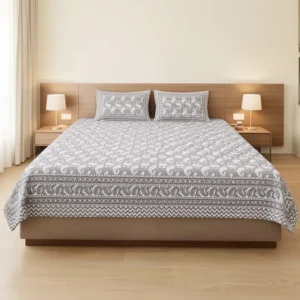 Be the first to review “FeelsGood Home Decor Organic Cotton King Size Bedsheet | Elegant Mughal Floral & Diamond Pattern | Neutral Tones”