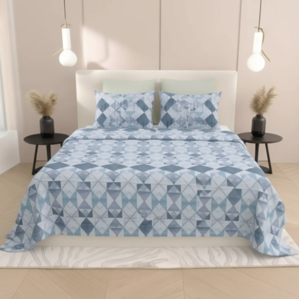 Experience the perfect blend of traditional artistry and modern serenity. Our Bohemian Collection introduces a stunning Ikat-inspired floral damask pattern that breathes life into any bedroom. The soothing combination of Teal Blue and Graphite Grey against a cream backdrop creates a spa-like atmosphere, perfect for unwinding. This design bridges the gap between rustic charm and modern sophistication.