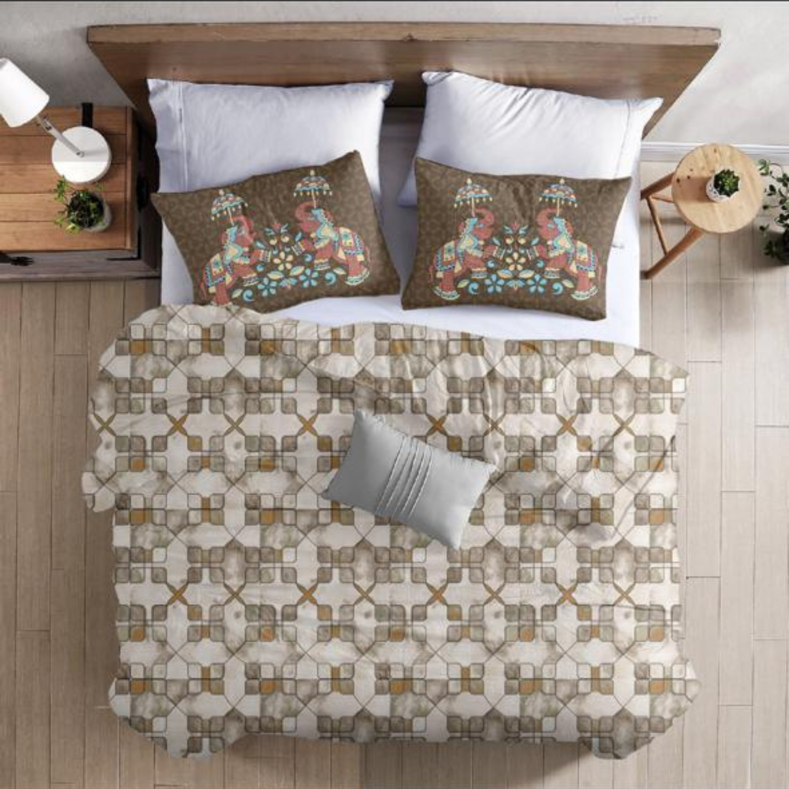 Redefine elegance and comfort in your bedroom with the FeelsGood Premium Organic Cotton Bedsheet Set. Designed with a soothing Beige & Brown geometric pattern, this bedsheet adds a sophisticated charm to your space while ensuring unmatched comfort.