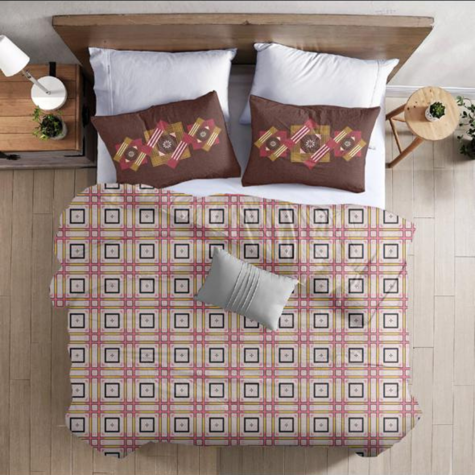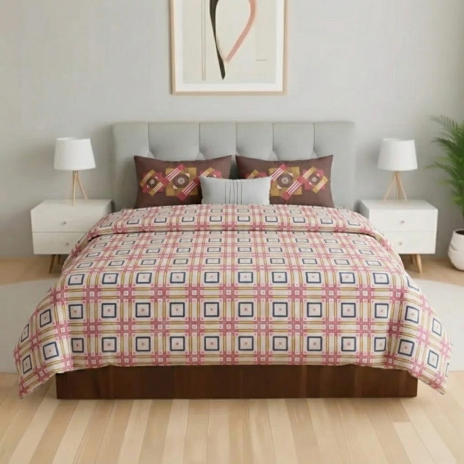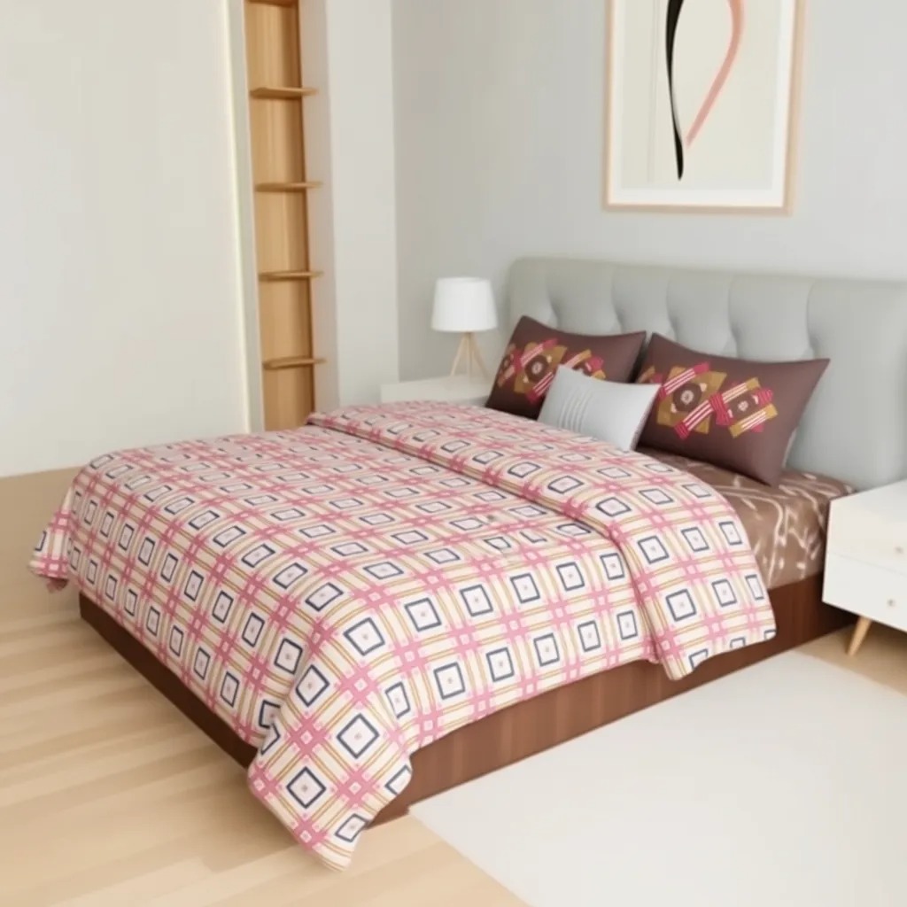 Add a vibrant yet classy touch to your bedroom with the FeelsGood Premium Organic Cotton Bedsheet Set. Featuring a modern Cream, Pink & Brown check design, this bedsheet brings elegance and warmth to your space.