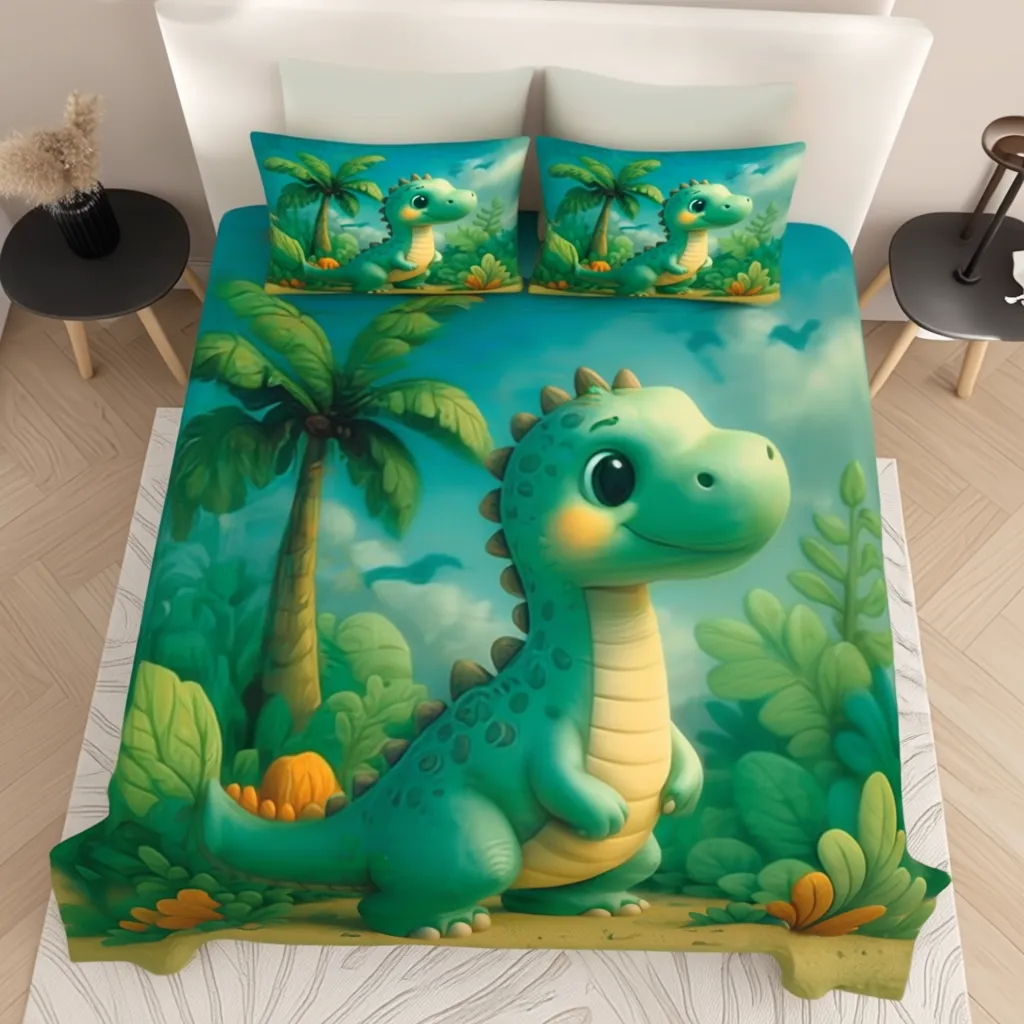 • Design: 7D High-Definition Print featuring a Cute Green Dinosaur in a Palm Tree Jungle.