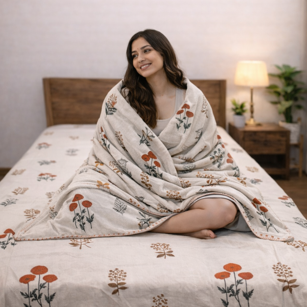 Whether you’re relaxing, sleeping, or simply unwinding, this dohar set wraps you in softness and style.
