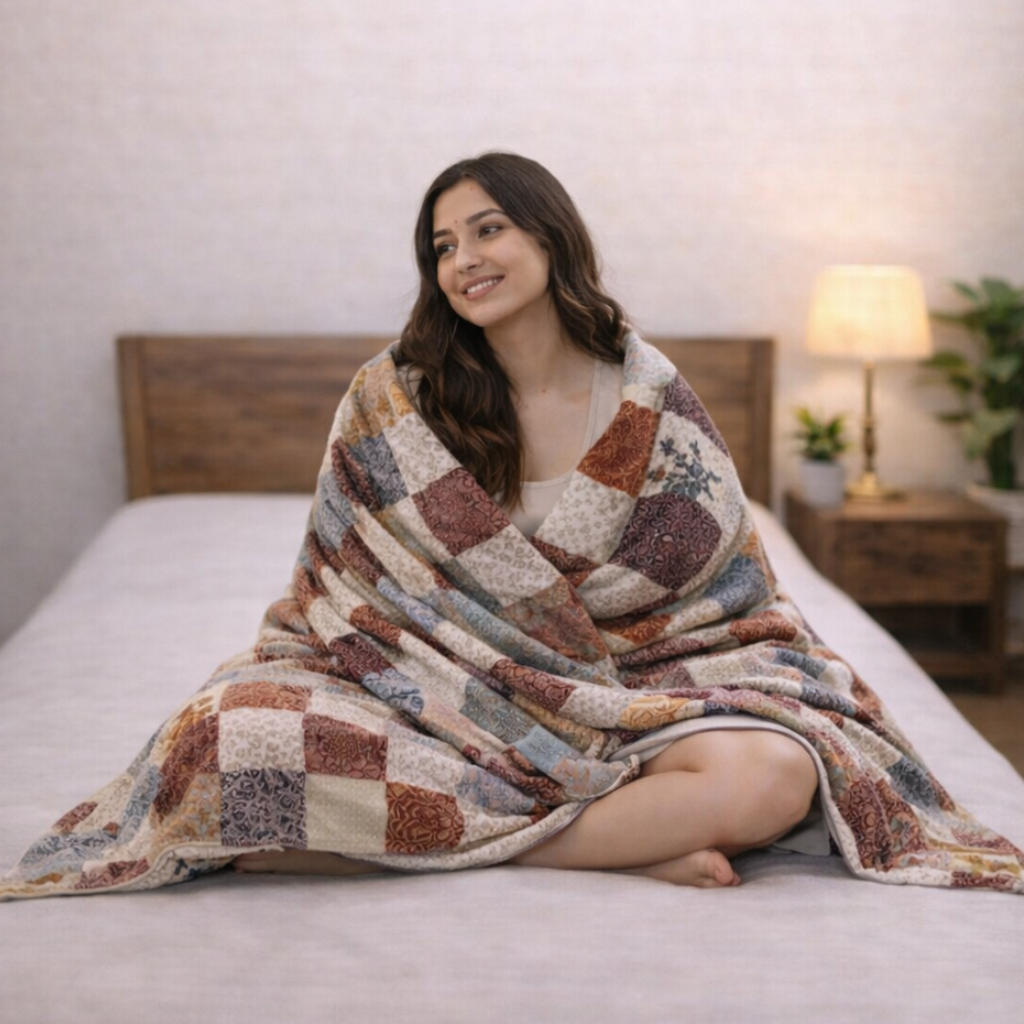 Enhance your bedroom with the rich and elegant look of the FeelsGood Premium Patchwork Dohar. Featuring a beautiful multi-color patchwork design with earthy tones, this dohar brings warmth, style, and comfort together.