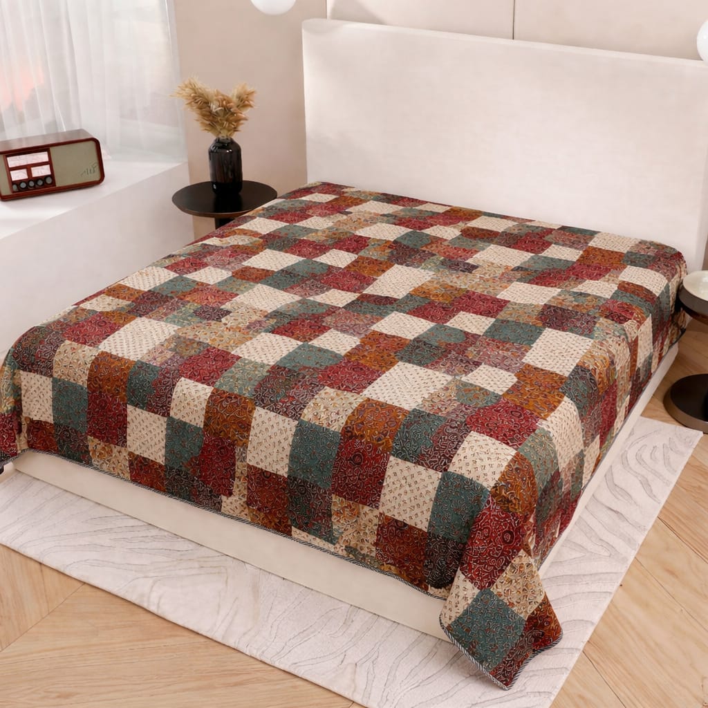 FeelsGood Premium Patchwork Printed Double Bed Dohar (90×100 Inches) | Soft Lightweight AC Dohar | Multi-Color Elegant Quilt for All Seasons