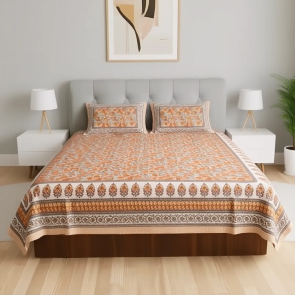 Designed for daily use in all seasons, this premium cotton bedsheet allows natural airflow and ensures long-lasting comfort. It is machine washable, easy to maintain, and retains its softness, colour and print clarity even after multiple washes.