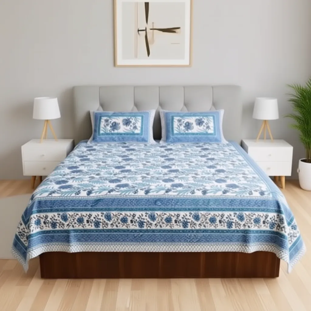 Designed for daily use in all seasons, this premium cotton bedsheet allows natural airflow and ensures long-lasting comfort. It is machine washable, easy to maintain, and retains its softness, colour and print quality even after multiple washes.