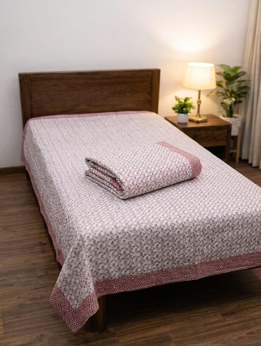 FeelsGood Rose Micro Vine Premium Single Bed Top Sheet Set (60×90 Inches) | Lightweight Summer Blanket | Soft Breathable Fabric | Pack of 2