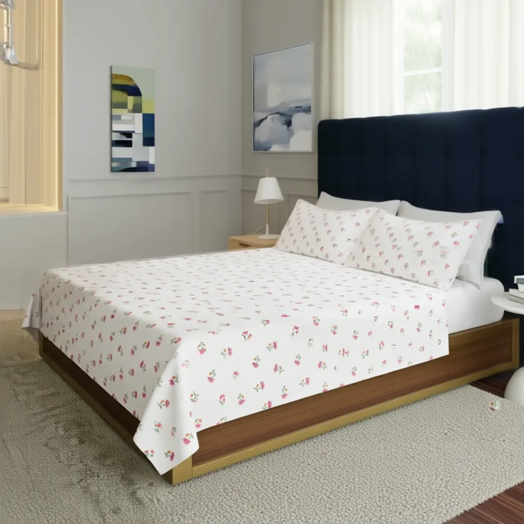 Be the first to review “Premium Organic Cotton Double Bed Bedsheet | White Floral Sprig Design | 230×240 cm with 2 Pillow Covers | FeelsGood Home Decor”